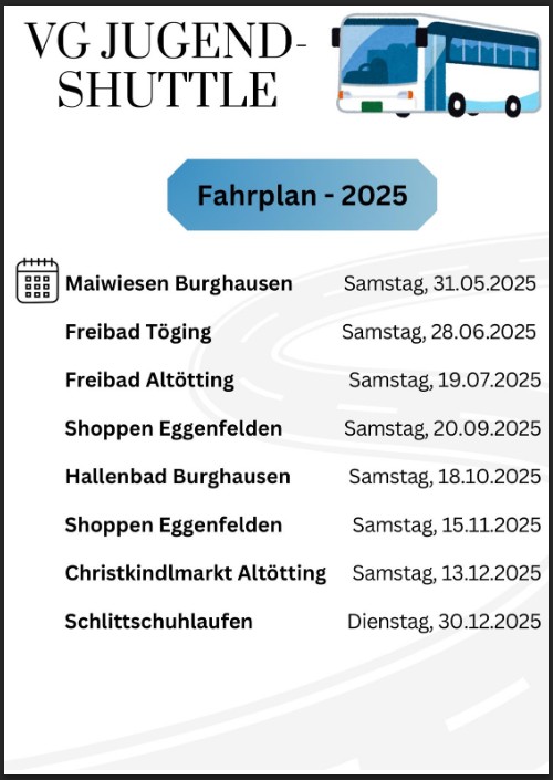 Die nächsten Temine für das VG-Jugend-Shuttle: